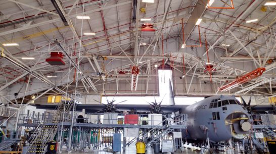 Full AE design for a new 3,750 SF US Air Force flight simulation training facility. AE design included the complex renovation of an existing 21,120 SF training and administration building and consisted of HVAC, lighting, electrical distribution, roofing, interior finishes, FF&E, signage, fire protection, and accessibility upgrades.